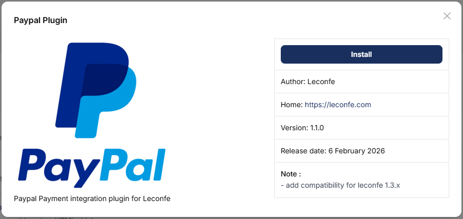 Note: For the Cloud version, the PayPal plugin will be available after the official release.